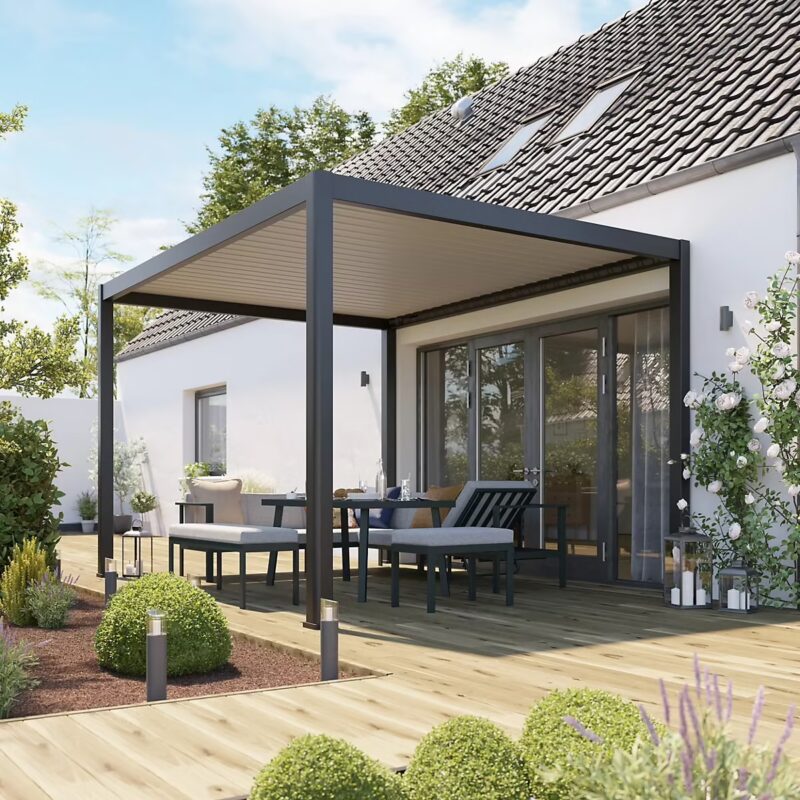 Breva motorisierte, freistehende, bioklimatische Pergola in Grau Klikstrom, 3 x 4 m