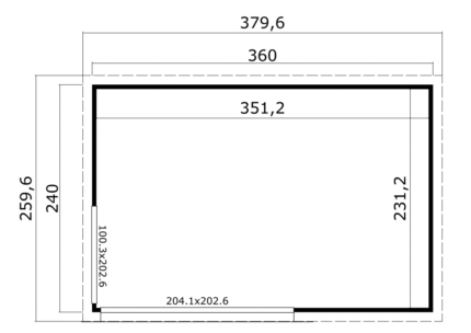 Gartenhaus ‚Eden‘ Fichtenholz naturbelassen 605 x 298 cm