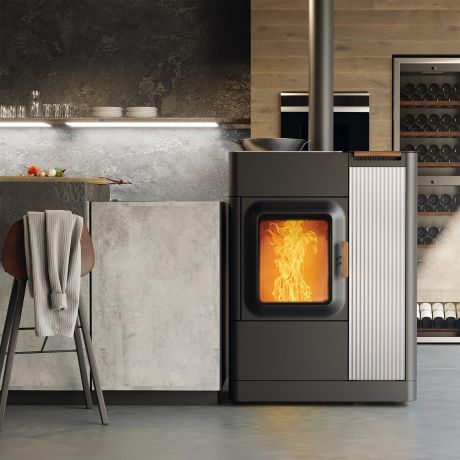 Mit Mo Duo Cook profitieren Sie einerseits vom Komfort eines automatischen Pelletfeuers und kommen mit diesem Gerät anderseits auch in den Genuss eines knisternden Holzfeuers.