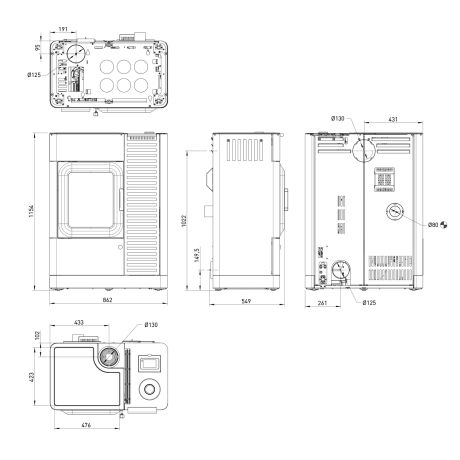 - Ø Rauchrohranschluss: 130 mm