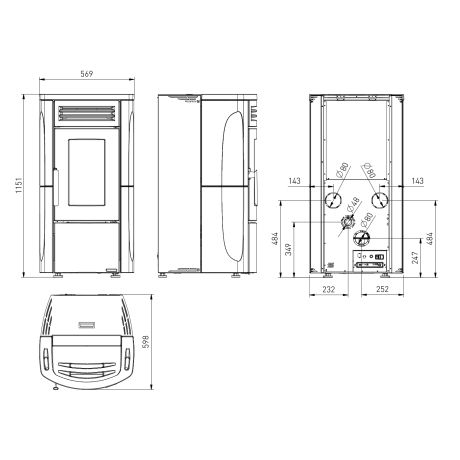 - Ø Rauchrohranschluss: 80 mm