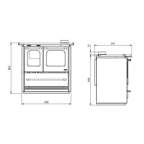 - Flexible Aufstellung dank wahlweisem Rauchrohranschluss oben oder hinten