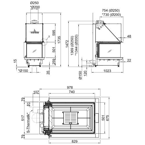 | Ø Rauchrohr (mm): | 200, 250 |